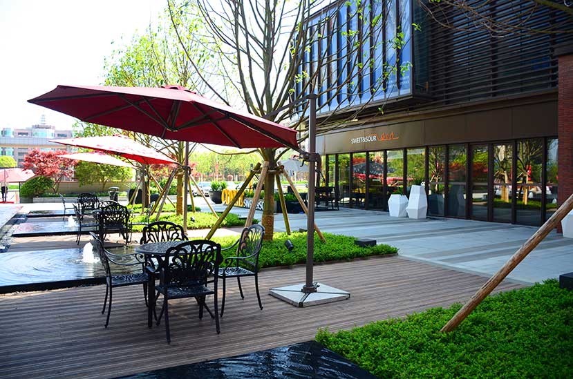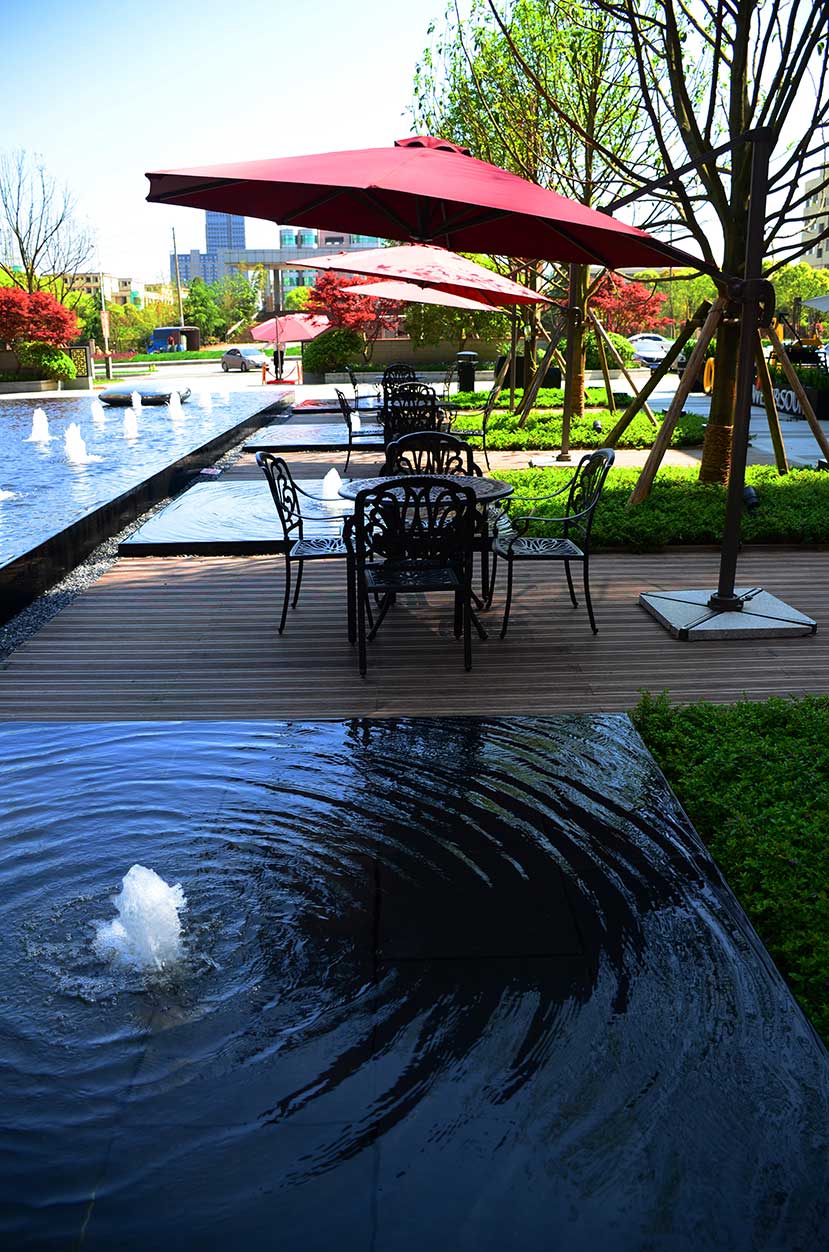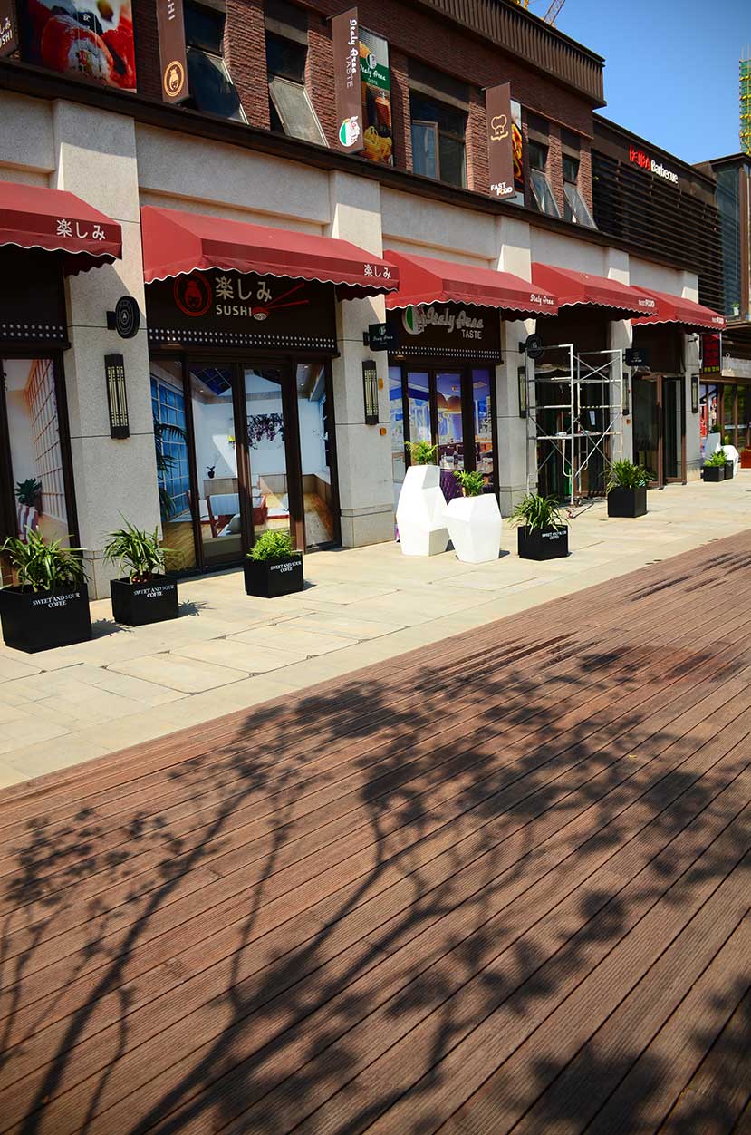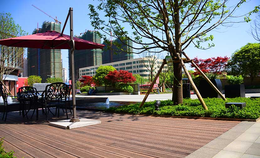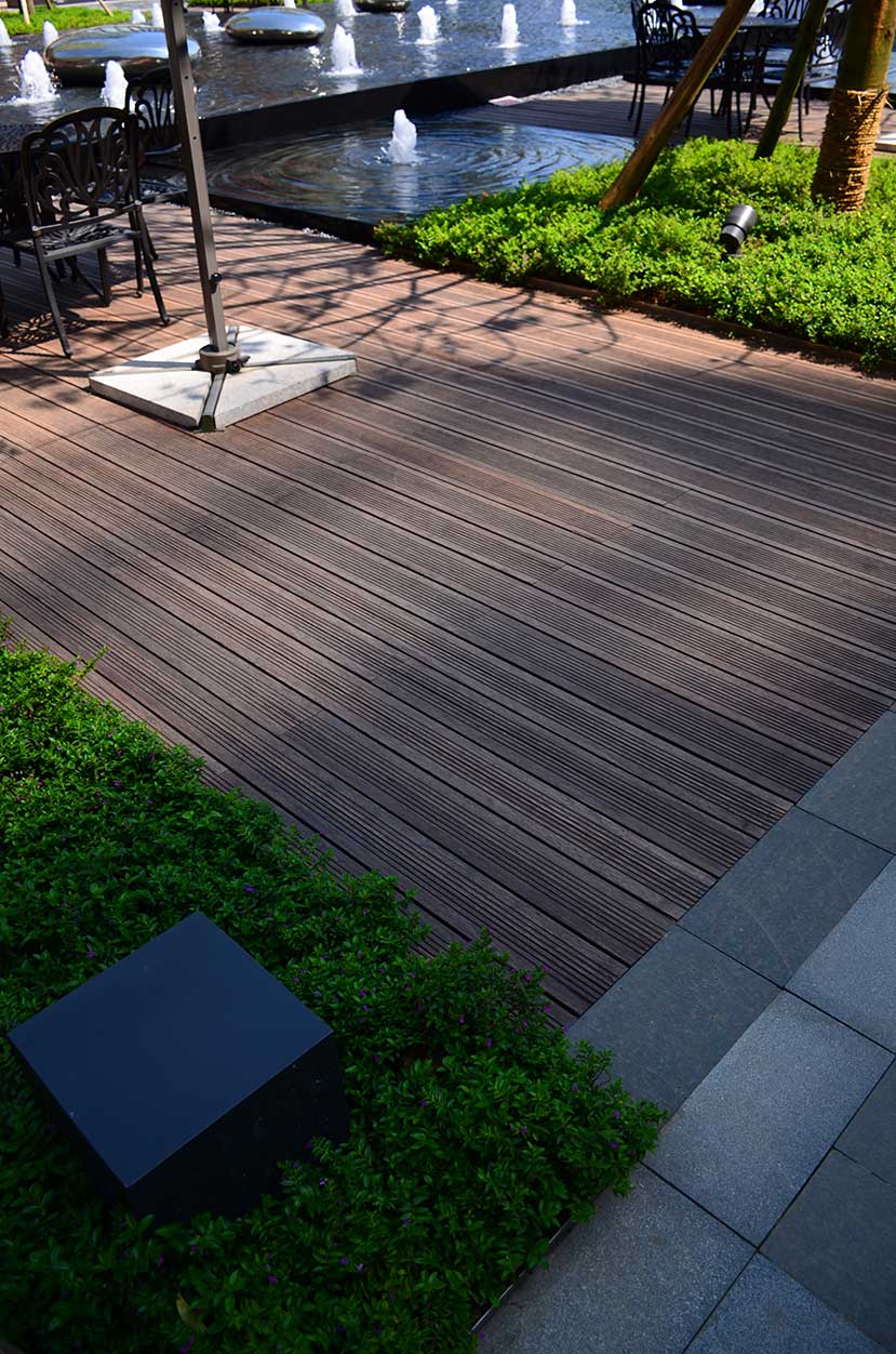 南昌万科金域国际位于南昌经开区双港西大街,是万科地产布局南昌的重点项目,该项目是南昌首屈一指的低密、人文、宜居的学院派主题风格社区。 南昌万科金域国际项目的社区风情广场使用桃花江户外防腐竹地板结合原生石材作为地面铺装,强化人与环境的自然统一,灵动的流水景观与学院派风格的建筑完美结合,漫步其中仿佛置身于欧洲某个宁静的古老小镇。