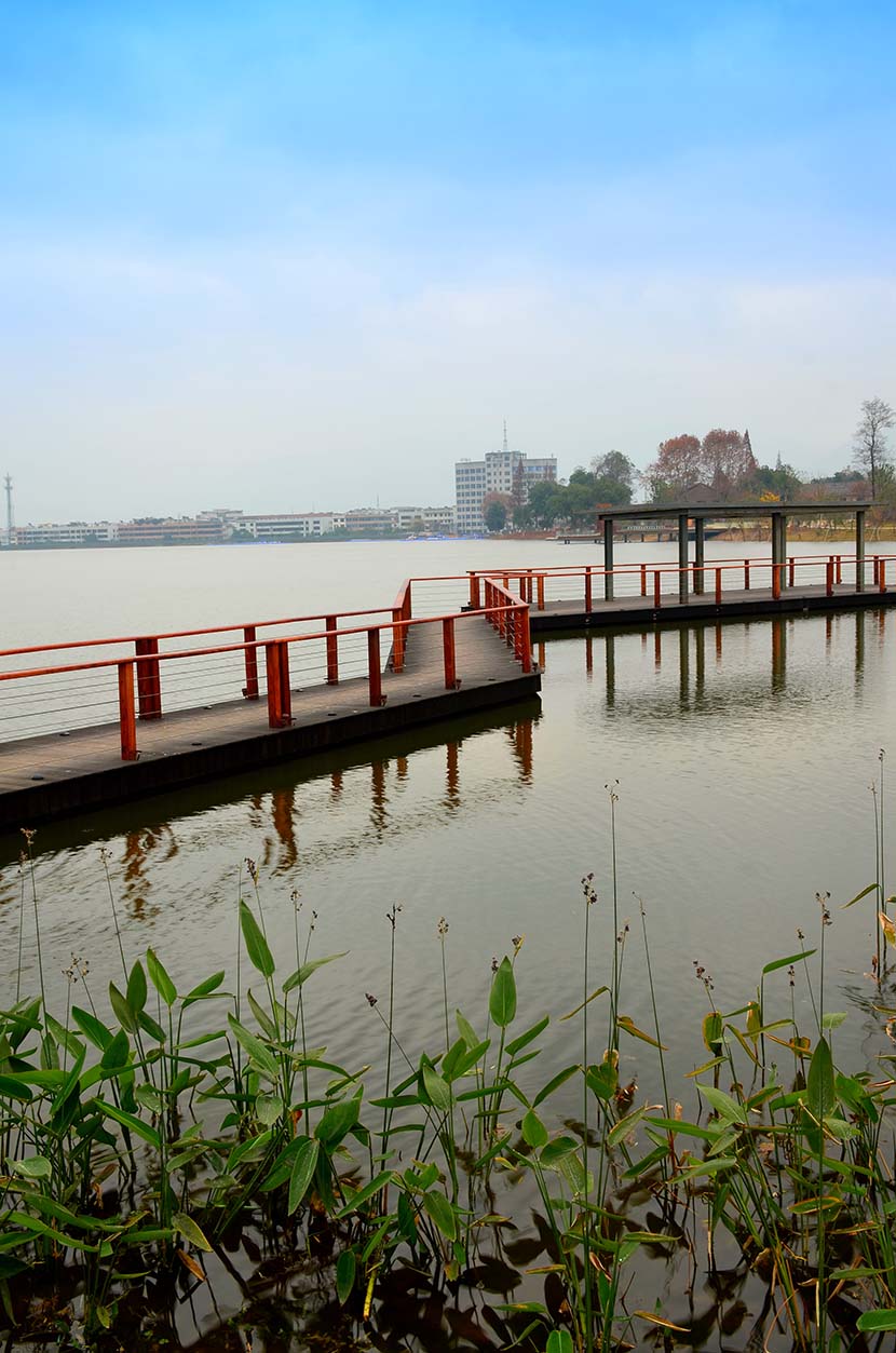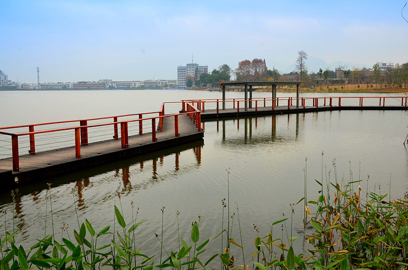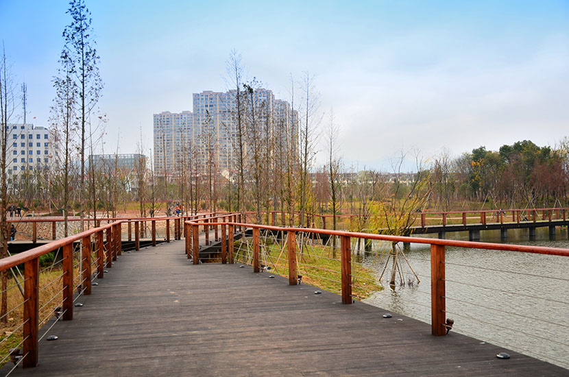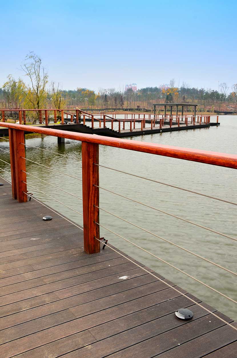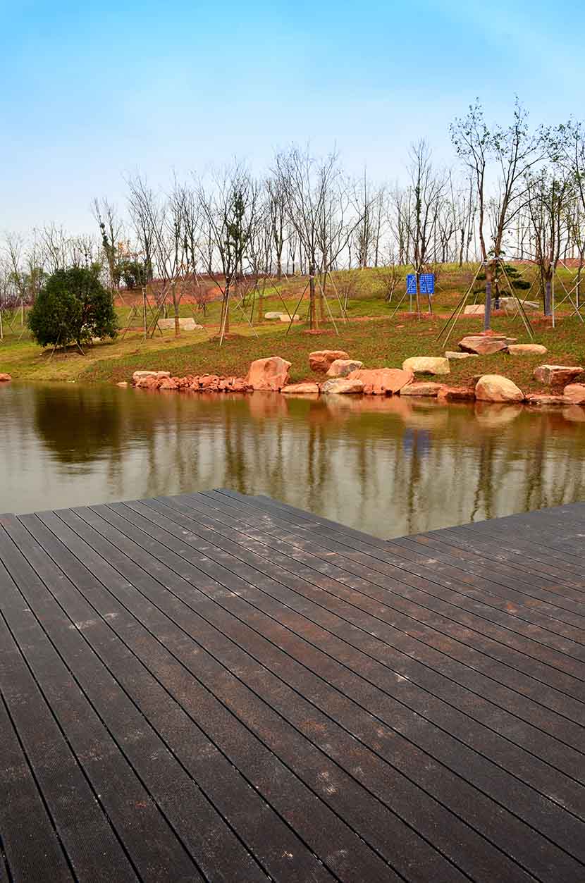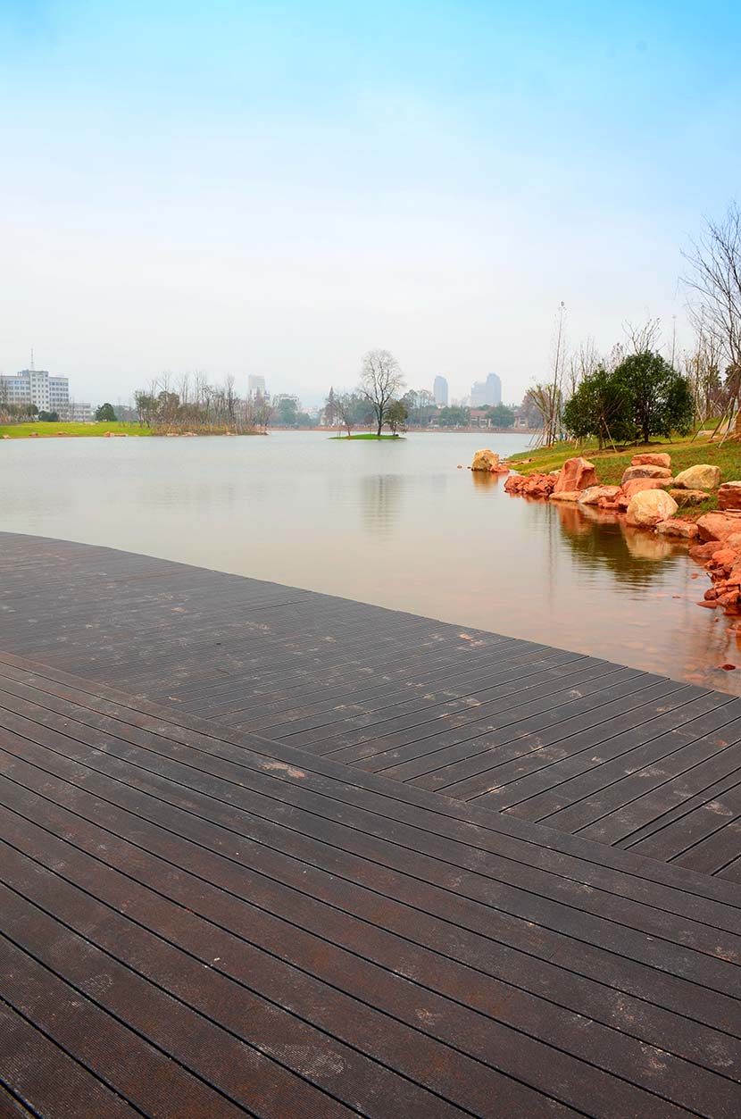 金狮湖公园位于浙江金华市北部的浦江县,面积1265亩(水域面积368亩),总投资48亿元。项目规划为一环(金狮湖慢行游憩环)、三片(人文体验景观风貌片、动感都市景观风貌片、自然生态景观风貌片)及五区(工业遗存展示区、书香文创休闲区、康体活动休闲区、湿地田园游览区、滨湖广场活力区)。公园环湖景观步道全部使用桃花江户外防腐竹地板,打造金华的“小西湖”。