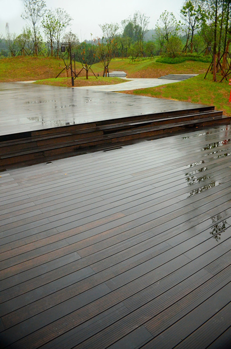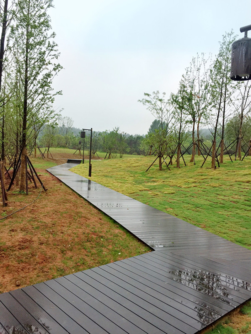 紫蓬山是取名紫色袈裟和蓬莱仙岛的首字而得名,寓紫气东来之意,位于合肥西南18公里,肥西县农兴镇南,有森林大道与市区相通,紫蓬山自清代开始便有庐阳第一山之美誉。 公园内大量运用湖南桃花江竹材科技的户外高炭防腐重竹地板,森林般的原始景致,未经大量人工雕琢,竹材的运用在公园中显得格外和谐,静雅的自然风景与环保的竹材相得益彰,大雨冲刷后的地板光洁如初,防腐耐磨稳定性高,是人们休闲娱乐,放松心情的好去处。