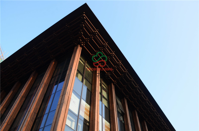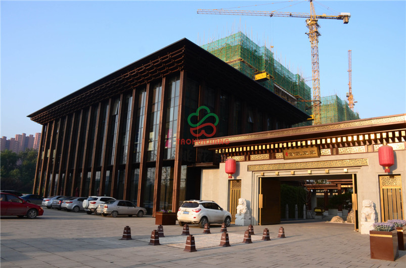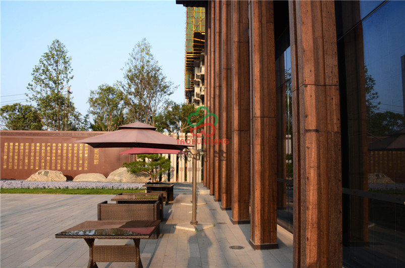 万科龙湖紫郡是万科地产在济南开发的第12个项目,而项目打造的是中式风情园林,在景观的整体规划设计中,呈现的是由中式古典 + 时尚典雅组成的高品质泛会所景观社区,采用简约现代的风格来营造项目尊典雅,具有新视觉体验的景观空间。项目大门旁的主体建筑采用桃花江竹材科技的户外高耐竹钢材料做装饰,整体感官坚固又大气十足,加之竹材的环保特性和独有的文化内涵,从上至下,每一处细节都能体现尊享系的设计理念,也与项目的文化内核十分契合,文化底蕴深厚。