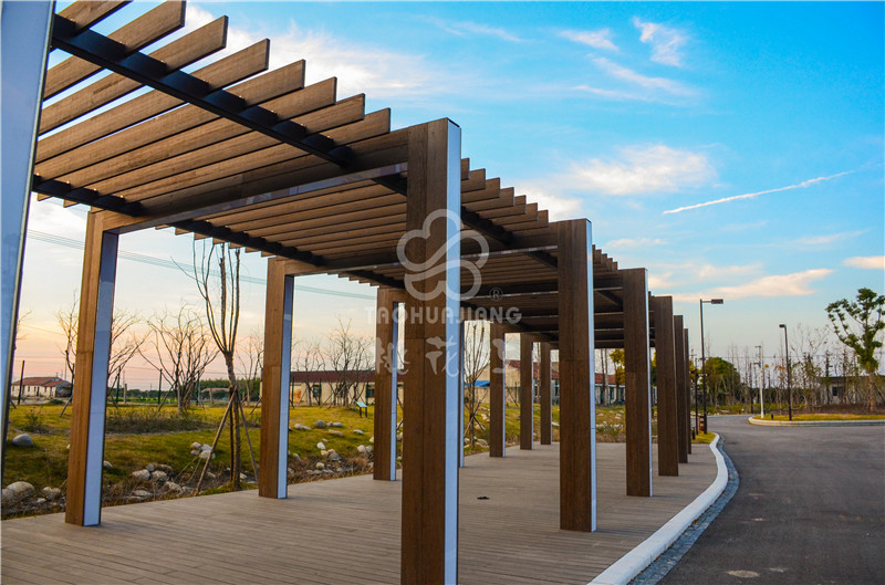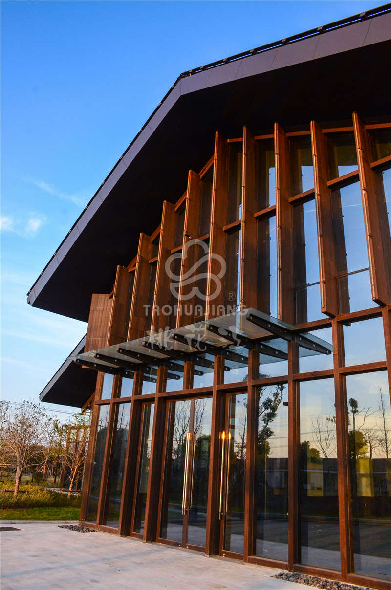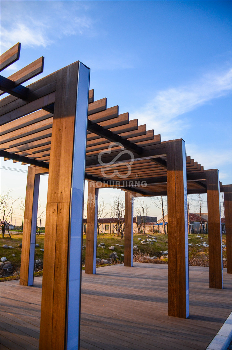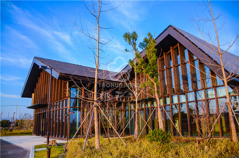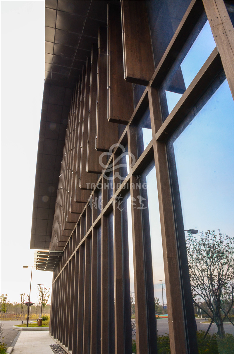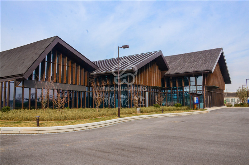 海门农副产品会展中心位于江苏南通海门市开发区上海路、黄浦江路交叉口西侧,该展销中心是海门市最大的专业农产品展销中心。该会展中心的立面装饰墙板、景观地板与户外廊架全部采用湖南桃花江竹材科技生产的高炭防腐户外竹材。