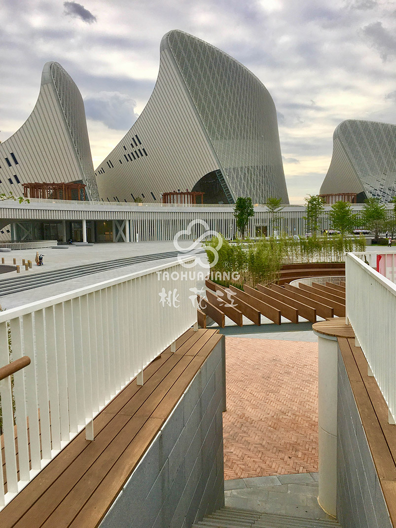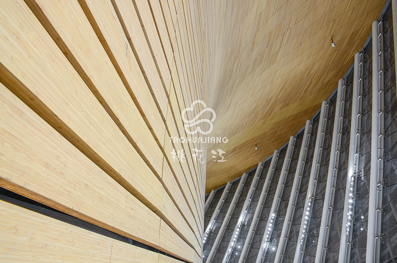 福州海峡文化艺术中心是由芬兰设计大师佩卡·萨米宁Pekka Salminen亲自操刀设计,该项目大量使用桃花江竹集成材进行室内装饰,是竹材应用于大型文化场馆的又一经典案例。 佩卡·萨米宁是全球对擅长使用竹材装饰的设计大师之一,他认为使用竹材是一种自然的选择,竹材在美学以及生态上的优势是其它材料无法比拟的,而且竹材是真正的中国传统材料。 福州海峡文化艺术中心总建筑面积15万平方米,工程总造价超过国家大剧院的海峡文化艺术中心,整个建筑群造型似一朵洁白的茉莉花,5个花瓣式场馆每个都是一个功能厅,包含多功能戏剧厅、歌剧院、音乐厅、艺术博物馆、影视中心等一系列文化设施,堪称福州的文化新地标,它宛如一颗璀璨的文化明珠,镶嵌在福州新区三江口片区。