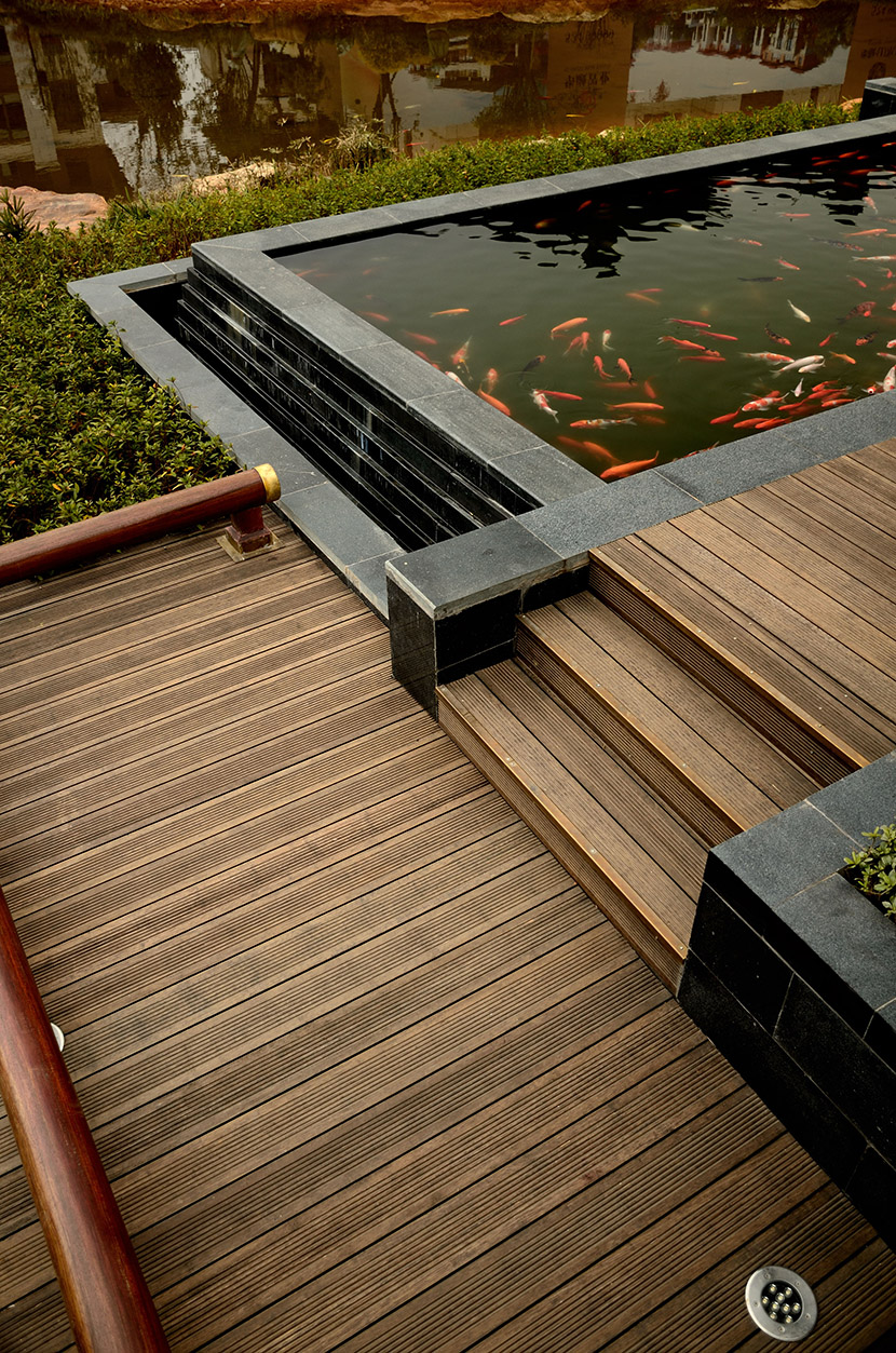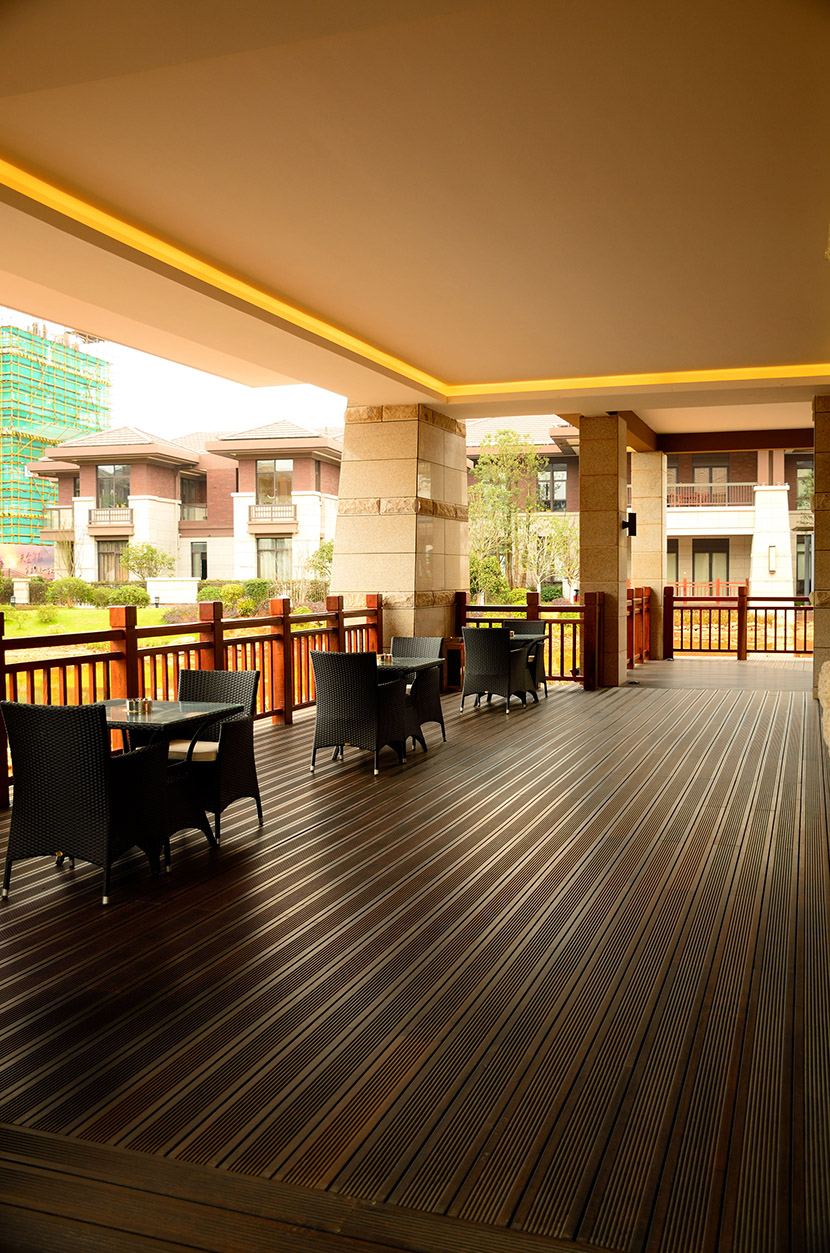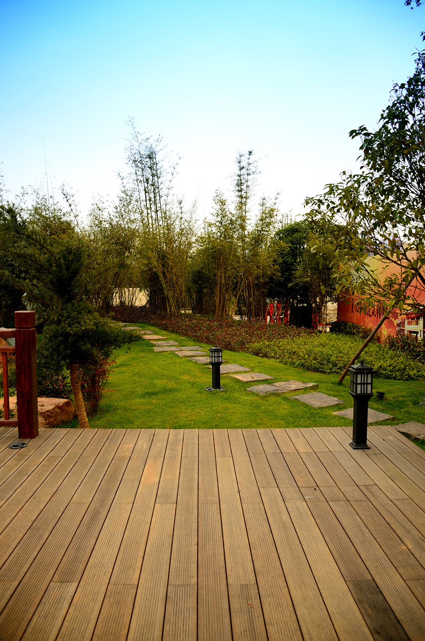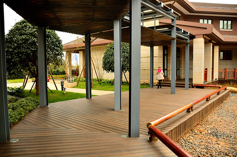 华融山水苑是由实力央企华融置业在湘潭倾力打造的首个高端别墅项目。桃花江竹材科技的高炭防腐户外地板在该项目营销中心、园林景观及别墅样板区大量运用。 高端地产项目青睐环保竹材不仅是因为其材料的高环保和高品质,更深层的原因在于通过竹材的运用将竹文化、中式园林以及中国文化三者有机结合,经建筑的语言传递出项目厚重的文化底蕴从而提升项目的高端形象。这是其它材料无法与竹制材料相提并论的重要原因,也是竹制材料的精髓所在,桃花江竹材科技不仅仅是一种材料生产者,更是一种文化的传承者。