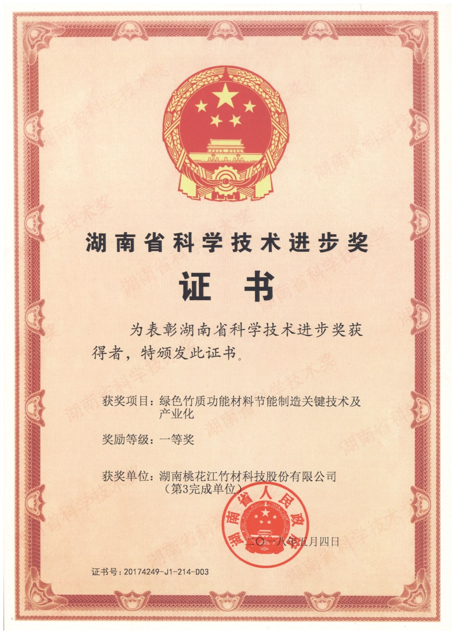 • 5月4日下午,湖南省科学技术奖励大会在长沙召开。211个项目分获2017年度省自然科学奖、省技术发明奖和省科技进步奖。 此次大会授奖项目(团队)211项,其中自然科学奖项目41项(一等奖9项、二等奖15项、三等奖17项),技术发明奖项目14项(一等奖4项、二等奖4项、三等奖6项),科学技术进步奖(创新团队)2个、科学技术进步奖项目154项(一等奖16项、二等奖56项、三等奖82项)。 其中, 168极速/赛车/幸运/飞艇官方开奖历史记录的绿色竹质功能材料节能制造关键技术及产业化项目荣获2017年湖南省科学技术进步一等奖。...